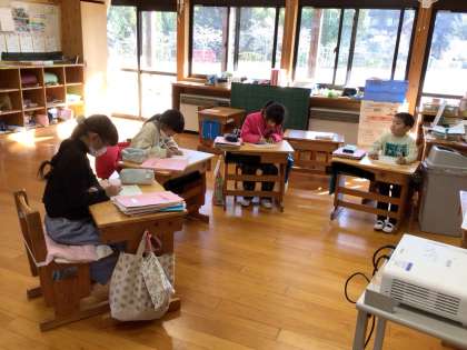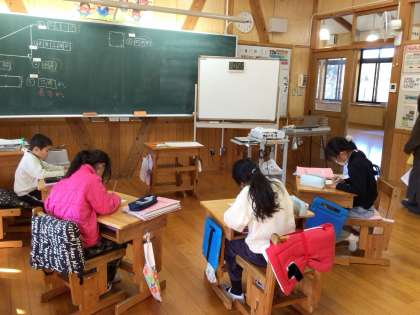 九九の表を何分で完成させることができるか、タイマーをセットして競争しています。