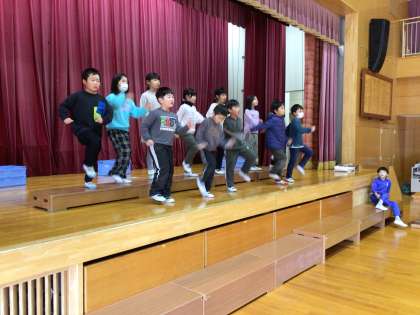歌の練習をしています。振り付けもつけて、楽しいものにできています。