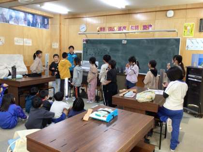 模範演奏をきいています。4年生はミッキーマウスマーチを3年生に披露しました。