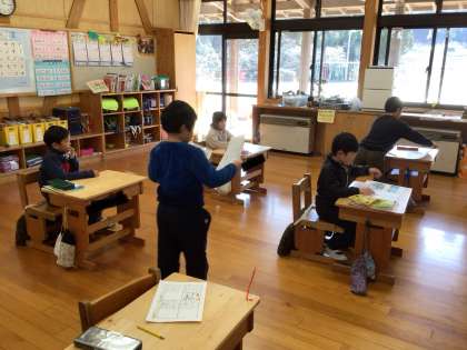 明日は入学説明会があります。1年生が新入生のために、巴ヶ丘小学校のことがよくわかる「教科書」を作ってくれました。明日プレゼントする予定です。