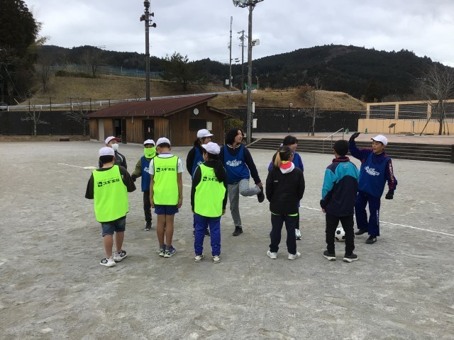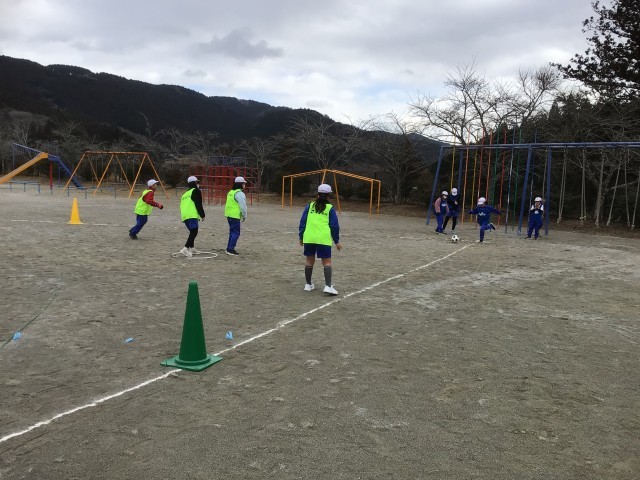 キックベースに取り組んでいます。雪が少しちらついていますが、元気いっぱいです。