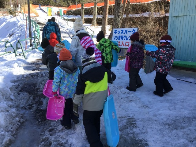 低学年のそりの様子です。しっかりと説明を聞いています。