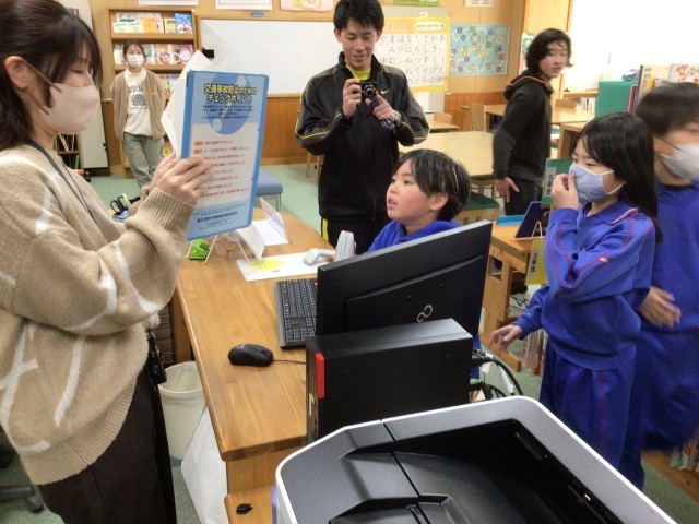 今日の図書集会は、図書委員の子が考えてくれた本探しゲームに取り組みました。司令が書いてある紙をチームごとに探して、そこに書いてある本を図書室で探し出す、その早さを競います。みんな一生懸命に探しています。