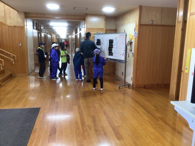 今日も頑張っています。終わったら記録が書いてあるホワイトボードのまわりに集まって、今日の成果を確認しあっています。ボランティアの方もありがとうございました。