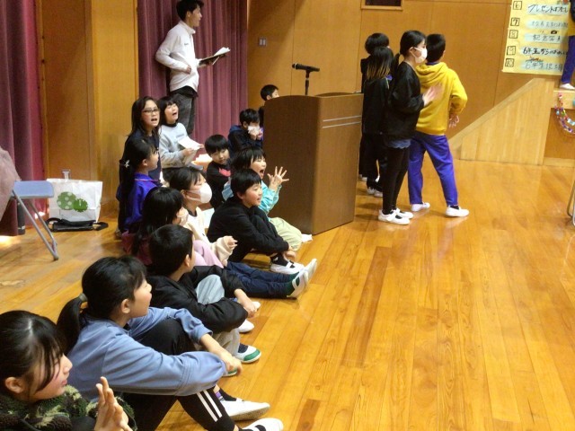 中学年は、6年生の好きなものをインタビューして、ジェスチャーゲームをしてくれました。はきはきと進行する姿が頼もしかったです。