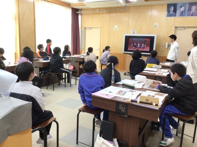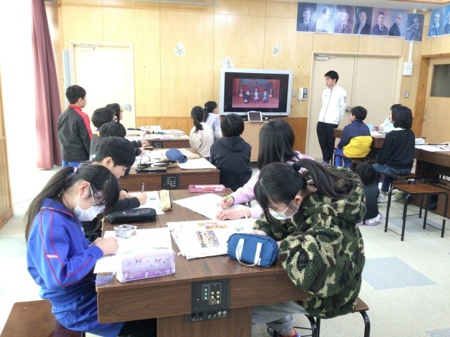 「祭りばやしのとくちょうを感じ取りましょう」の単元に取り組んでいます。動画を見ながら気づいたことをメモしています。