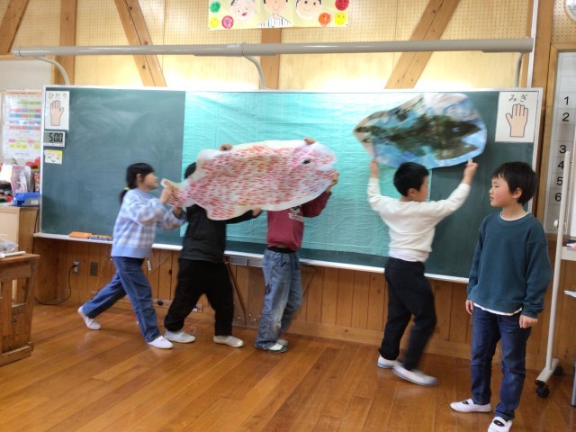 「スイミー」の音読発表会を開いてくれました。元気一杯、楽しい発表を聞かせてくれました。
