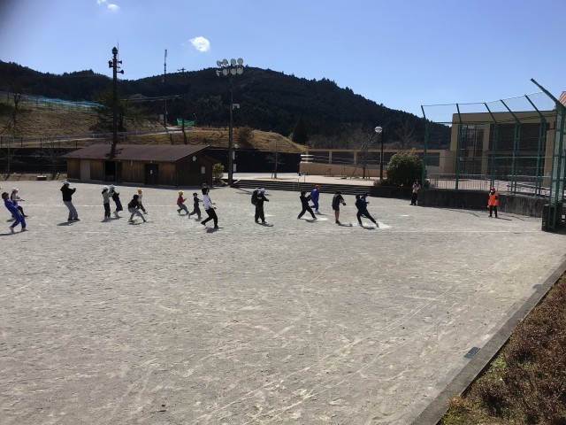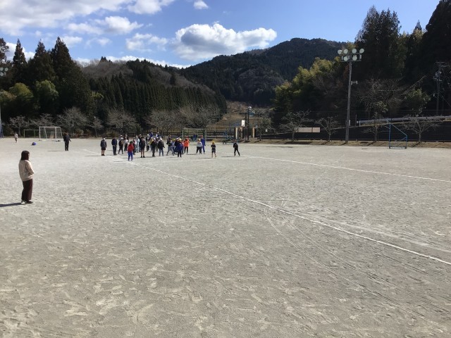 6年生との思い出づくりの会を開いています。今日は1、2年生とダルマさんが転んだをしています。