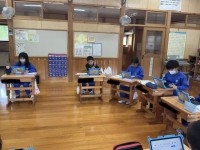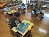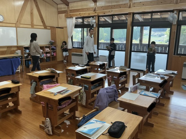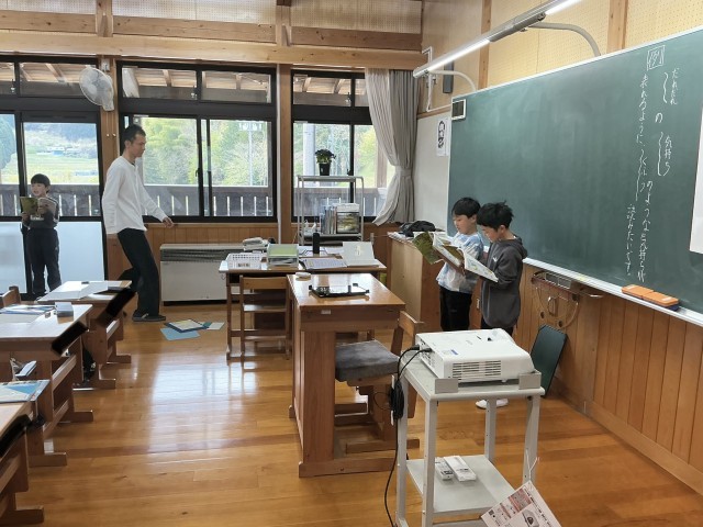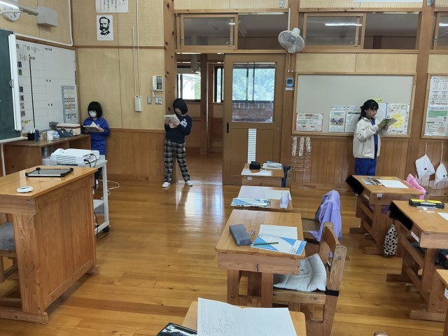 明日の音読発表会に向けて、教室いっぱいに広がって大きな声で音読できるように練習しています。