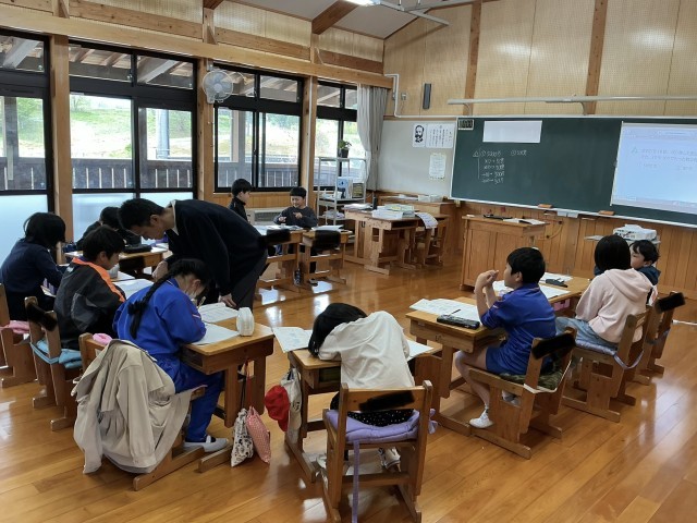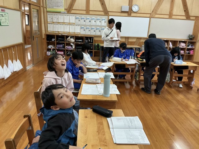 4年生の算数様子です。教師もお互いの授業を見合って授業力を高めています。