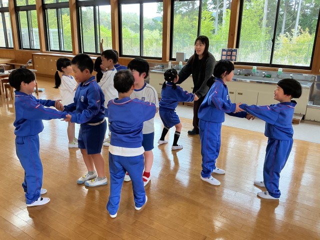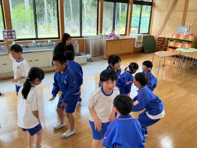 昨日の低学年の音楽の授業では、校歌の練習と、7までの数字を使った英語の歌のリズムに合わせたダンスに取り組みました。
