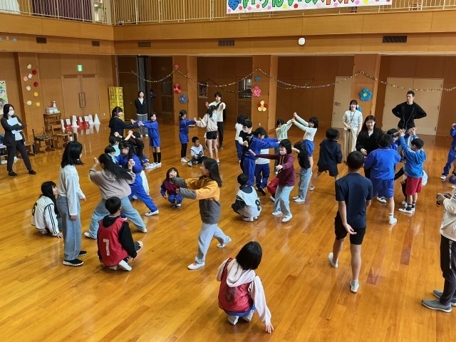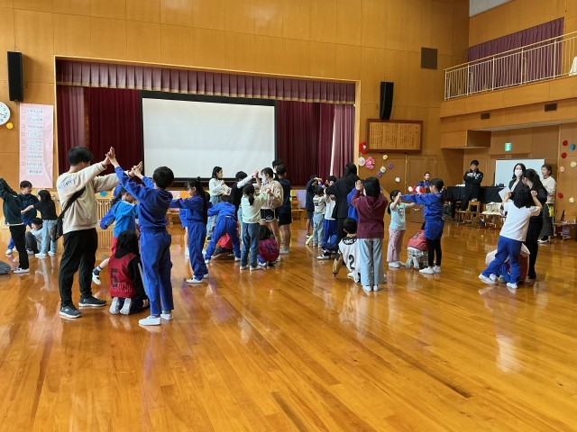 ゲームは5年生が企画してくれました。「気の中のリス」というゲームをしました。おおいに盛り上がりました。