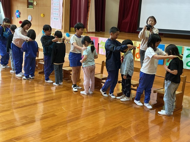 4年生からは色紙で作ったメダルをプレゼントしました。とてもかっこいい贈り物でした。この会は6年生が中心となって企画し、今まで頑張ってくれました。さすが最上級生です。頼もしくなってきました。