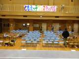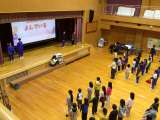 会場の全員で歌う「パプリカ」と校歌を練習しました。6年生の子が踊りの見本となって...