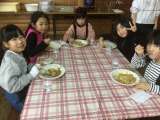 待ちに待ったカレーです。みんな美味しそうに食べています。