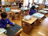 1年生は日づけの読み方を勉強しています。2年生は九九の自信のある段を先生に聞いて...