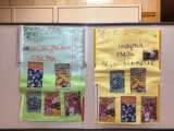 1年生の子どもたちが作った宝箱です。色紙やビーズ、モールなどで飾り付けがしてあり...