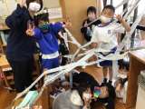 これだけたくさん、よくつないで吊るしましたね。ダイナミックな造形活動で子どもたち...