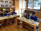 2年生がクリスマスカードを作っていました。 自分でイラストをかいたり、紙を切って...
