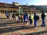 寒風の中、6年生が外に出てきました。何人かは半袖と短パン。卒業記念の写真を今から...