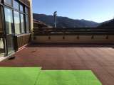 人工芝を敷く作業が進行中です。40センチ四方ぐらいの人工芝を子どもたちと先生たち...