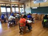 算数の授業をしています。子どもたちは授業が始める前にタブレットと算数セットを張り...