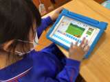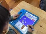 という1年生算数の単元です。タブレットのソフトを使って学習していました。1円、5...