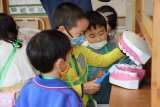 校内探検の様子です。壁に貼ってあるのものを見たり、「これはなに?」と尋ねたり、に...