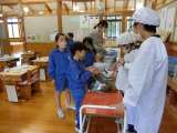 給食の配膳に慣れるまで、6年生が1年生教室で配膳の手伝いをしてくれます。盛り付け...