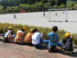 1年生が外に出てきました。アサガオの水やりです。3年生も畑に行き、野菜の苗の水や...