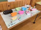 1年生の「いろいろな世界」が完成しました。紙を折ってしっかりと立っています。立体...