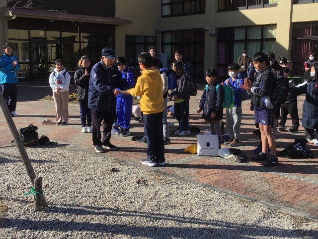 1年間お世話になった方にお礼の手紙や絵を渡しました。代表の子が感謝の言葉をそえて...