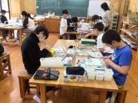 木版画の続きに取り組んでいます。早い子は転写が終わって彫刻刀で彫り進めています。