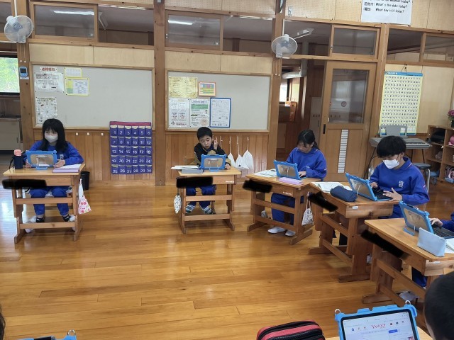 学習用タブレットが新調され、今日配布しました。今日貸与式を行い、タブレットの正し...