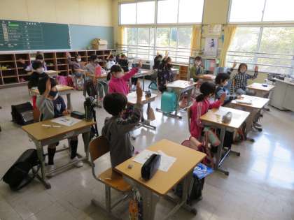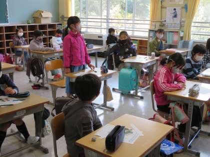 橋本塾開催!(4年生) 公開日 2021/04/07 更新日 2021/04/07 お知らせ 4年生は、今年がんばりたいことを考えた後、一人ずつ順にみんなの前で発表しました。それに加えて、橋本先生から、 「自分ががんばりたいことを、発表してみんなに聞いてもらうのはどうして?」 「相手の発表を字で聞いちゃダメ!相手が何を伝えたいのか、自分なりに考えながら聞くことが大切なんだよ」 という話がありました。4年生には難しそうな話でしたが、一生懸命理解しようとする姿は素敵でした。