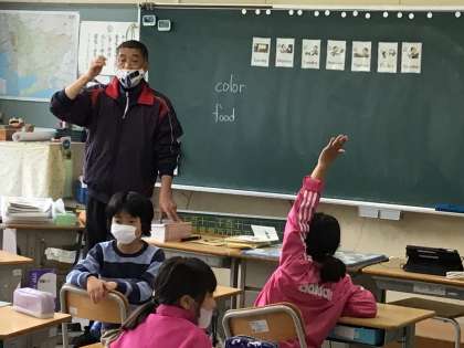 色や食べ物、スポーツ、教科、野菜を英語で伝え合いました。
