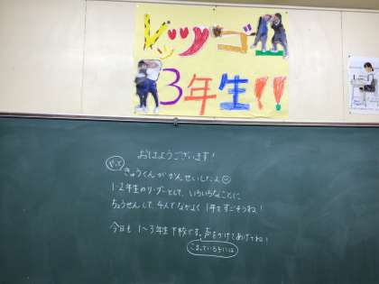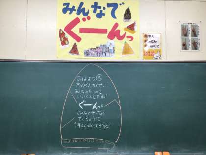 昨日までに1〜3年生は決まり、学級掲示も完成したのでお知らせします。級訓に込めた思いなどについては、授業参観の担任所信表明や学年だよりなどでお知らせします。