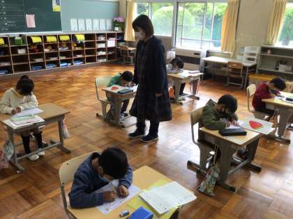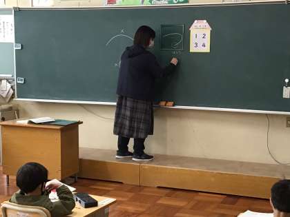 4/15 国語(1年生) 公開日 2021/04/15 更新日 2021/04/15 お知らせ ひらがなを書く練習をしています。 「つ」という字は、左上の1番のマスから書き始めて、2番のマスを通って、4番のマスでシュッとはらいます。 みんなで一緒に指の動きを確認してから、えんぴつで書いてみました。上手に書けたかな?