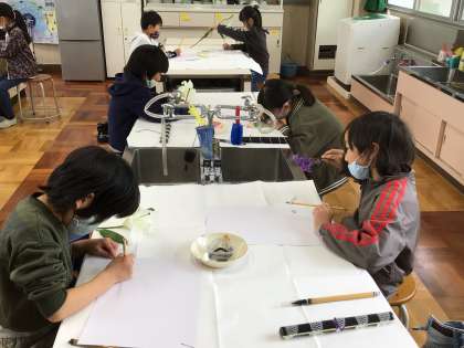 4/15 図画工作(4年生) 公開日 2021/04/15 更新日 2021/04/15 お知らせ 「今年の目標」を表し、それに添えるためのイラストを墨と筆を使って描いています。 用意された花の中からお気に入りのものを選び、よく見ながらスケッチします。どんな仕上がりになるのか楽しみです。