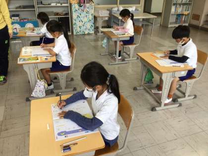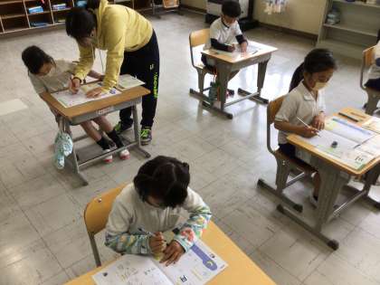 4/16 書写(2年生) 公開日 2021/04/16 更新日 2021/04/16 お知らせ 書き順には「上から下へ」「左から右へ」「外から内へ」「突きぬける線は最後に」という大まかなきまりがあります。これに気をつけて書くとバランスの良い文字を書くことができるそうです。 姿勢にも気をつけて、書き順のきまりを守って書きました。上手な文字が書けました。