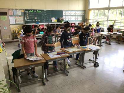 都道府県パズルが完成しました。今日は、明日の授業参観の進め方について説明を聞きました。