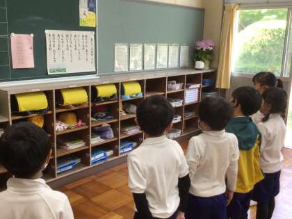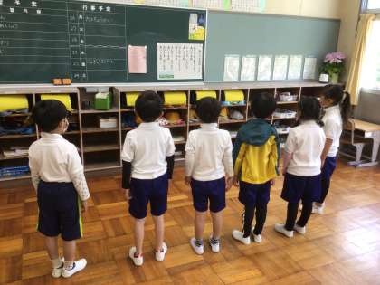 読み聞かせが早く終わった1年生は、朝の会の中で「あいうえおのうた」をみんなで声を出して読んでいました。