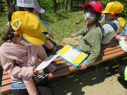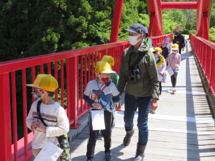 4/26 春の探鳥会(1・2年生) その2 公開日 2021/04/26 更新日 2021/04/26 お知らせ (王滝湖までの往復2km)+(王滝大橋周辺の散策)で、ざっと3km程の行程でしたが、みんな元気に歩き切りました。 椿木園地ではオオルリを鳴き声と姿の両方で確認できたようです。運がいいですね。