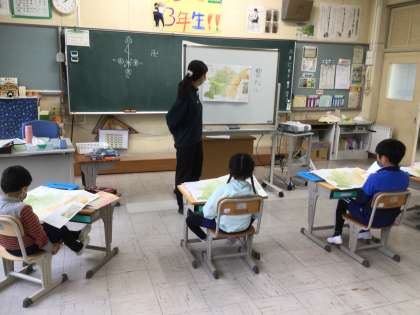 4/7 豊田市の様子(3年生 社会科) 公開日 2021/05/07 更新日 2021/05/07 お知らせ 地図上の方角の表し方を勉強しました。 豊田市の地図を見て、豊松小学校や豊田スタジアムの場所を探しました。 豊松小学校は、豊田市の「南」の方にあるようです。