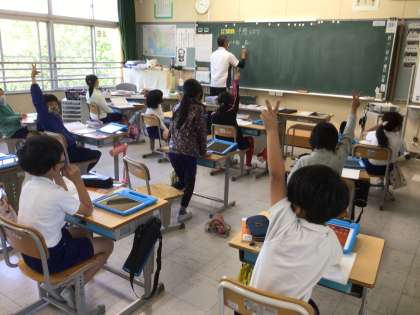 「玄関は、日が当たっているから教室より高い」というように予想します。