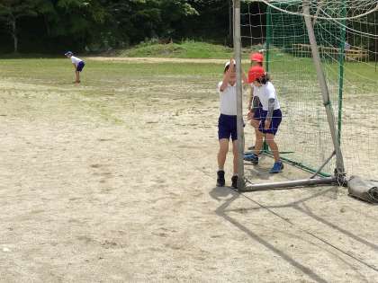 体を動かすのが大好きな豊松っ子は、水筒を片手に運動場に走っていきます。
