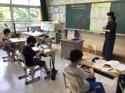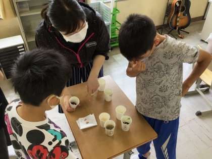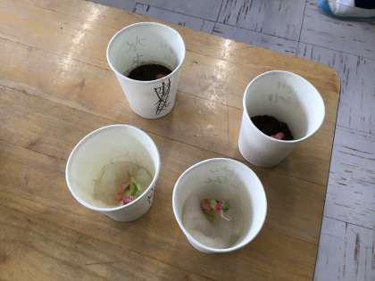 5/18 植物が育つ条件を考えよう(5年生 理科) 公開日 2021/05/18 更新日 2021/05/18 お知らせ 植物が育つのに必要なのは何でしょう?5年生の3人は「水、土、太陽、空気、温度」の五つを予想し、条件をいろいろ変えて実験したようです。今日は、その結果から分かることについて話し合いました。 ところで、「空気が必要かどうか」はどうやって調べたのでしょう。教室では真空状態はなかなか作れませんが…。 なるほど、水に沈めて空気に触れないようにしたみたいです。納得です…。