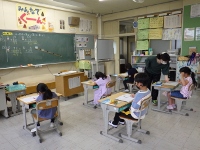 算数で筆算の学習を行いました。みんな、どの問題も正しく計算することができました。先生から「こんな間違いに、気を付けてね。」と位をそろえることを間違えた筆算の例が出されました。答えが全く違ってしまうことが分かり、位をそろえて書くことが大切なポイントだと確認しました。