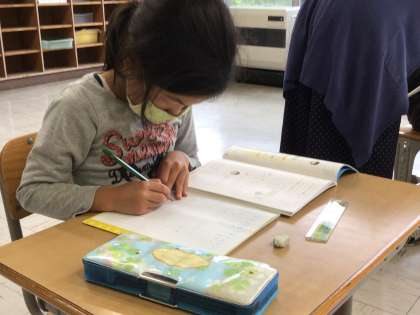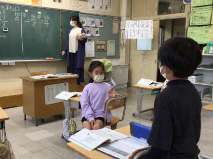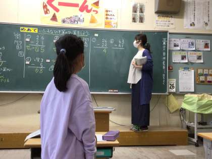 問題を各自で解いた後、解き方をみんなに説明しました。相手に分かるように伝えることで、自分の頭の中でも考え方が整理されるので、教え合うことはとても大切な活動です。