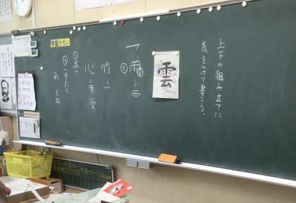 6/14 上下の組立に注意して書こう(4年生 書写) 公開日 2021/06/14 更新日 2021/06/14 お知らせ 今日の字は「雲」です。「雨」と「云」が上下に合わさった字です。書くときにちょっとつぶしてやるとバランスよくなります。ただし、「雨」が「雨かんむり」になるときには二画目の点画を外に向けるようにするなど、元の漢字とは形が変わるので注意が必要です。